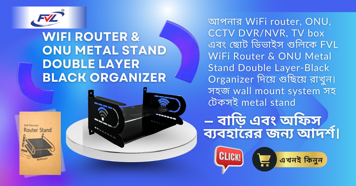 The FVL WiFi Router ONU Metal Stand Double Layer is a versatile and durable storage solution designed to keep your WiFi router, ONU, TV box, remotes and other small devices neatly organized in one place. Made from high‑quality black metal, this double layer stand not only supports everyday networking equipment but also enhances the look of your home or office setup with its sleek and functional design. Famous Vision Ltd.