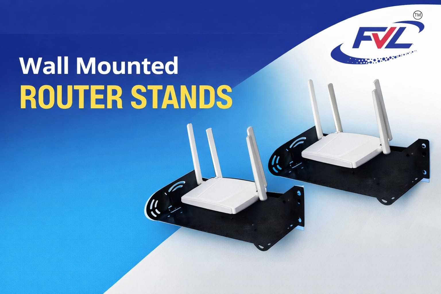 FVL WiFi Router ONU Metal Stand Non Fiting Double Layer provides a sturdy metal wall‑mounted platform to organize routers, ONUs, remotes, TV boxes and other devices at home or office with easy installation
